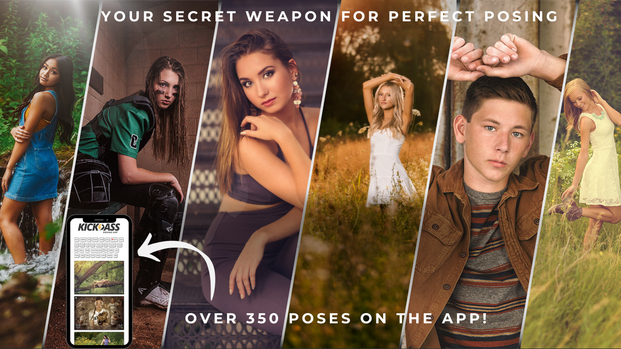 The Ultimate Posing Pack is your all-in-one toolkit for confidently directing every senior session. Packed with expert training, easy-to-follow posing formulas, and the Kickass Posing app with over 350 poses, this bundle gives you everything you need to master natural, flattering poses—fast. Whether you're working with guys, girls, or sports, you'll never run out of fresh ideas or get stuck in a posing rut again.